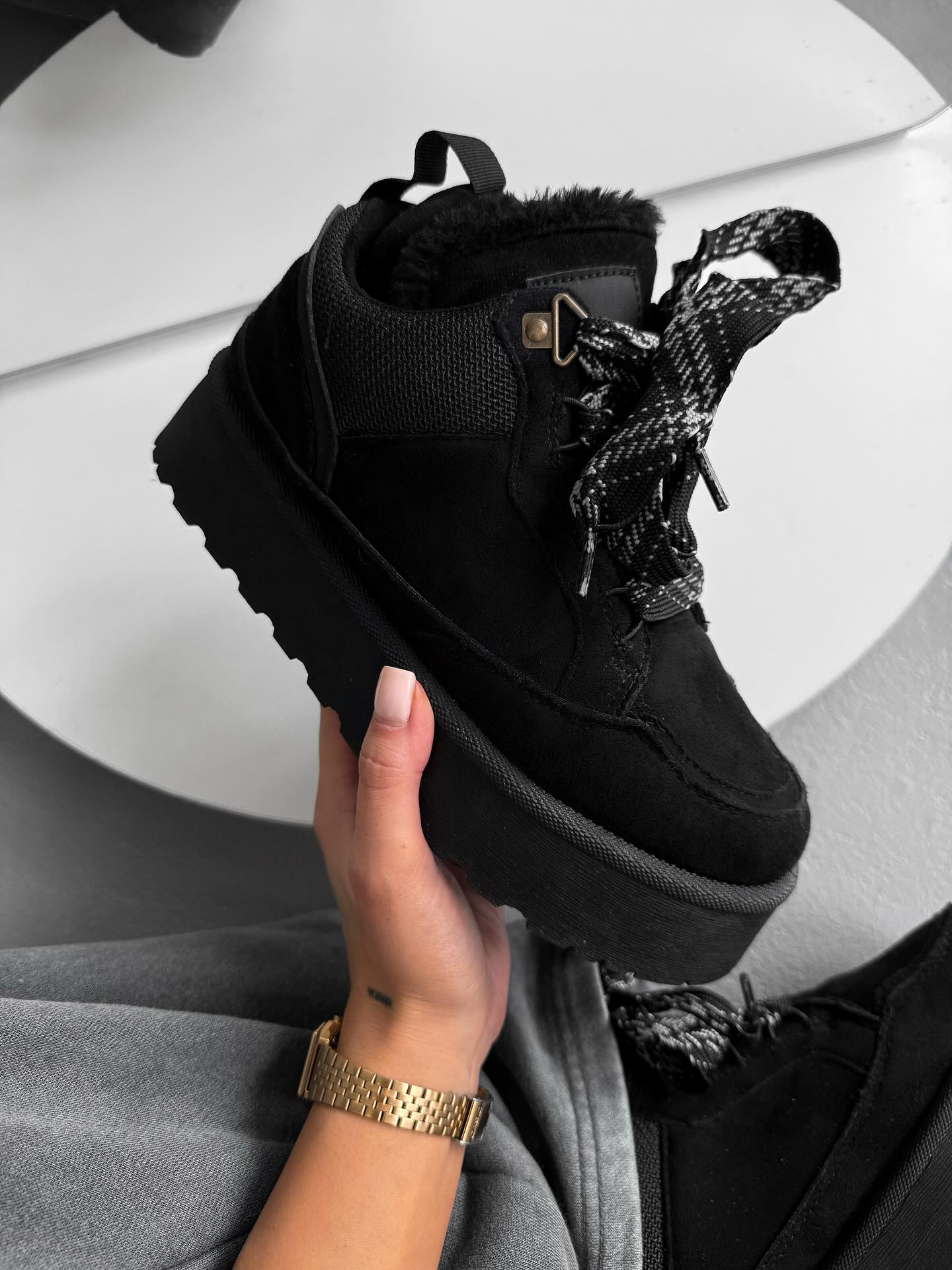 Beige Platform Sneakers With Oversized Wool-Effect Laces