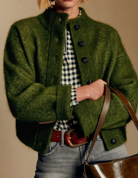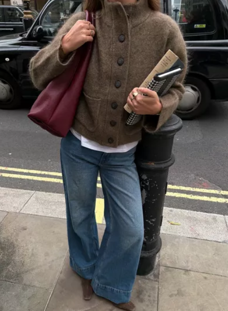 This warm brown knit cardigan features a classic button-front design with a soft, textured surface and a relaxed, versatile fit. Layer it over a white tee for a casual, street-ready look.