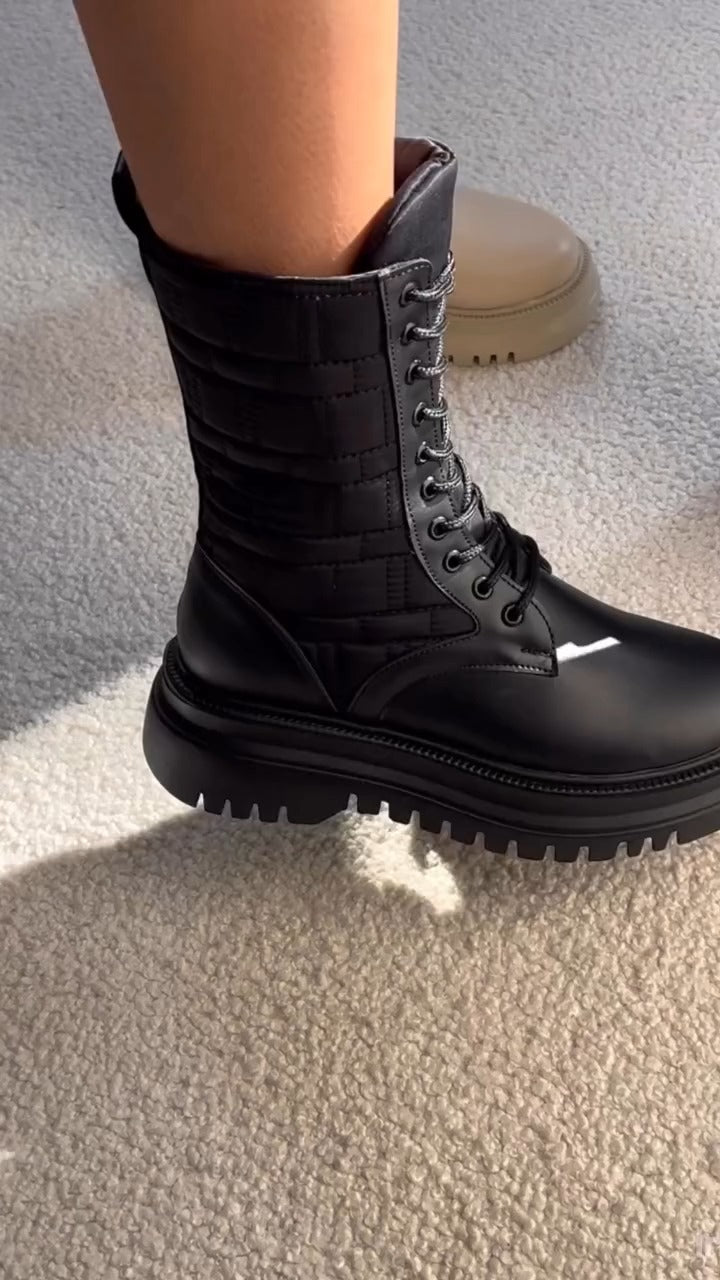 Combat-Style Lace-Up Boots With Chunky Sole