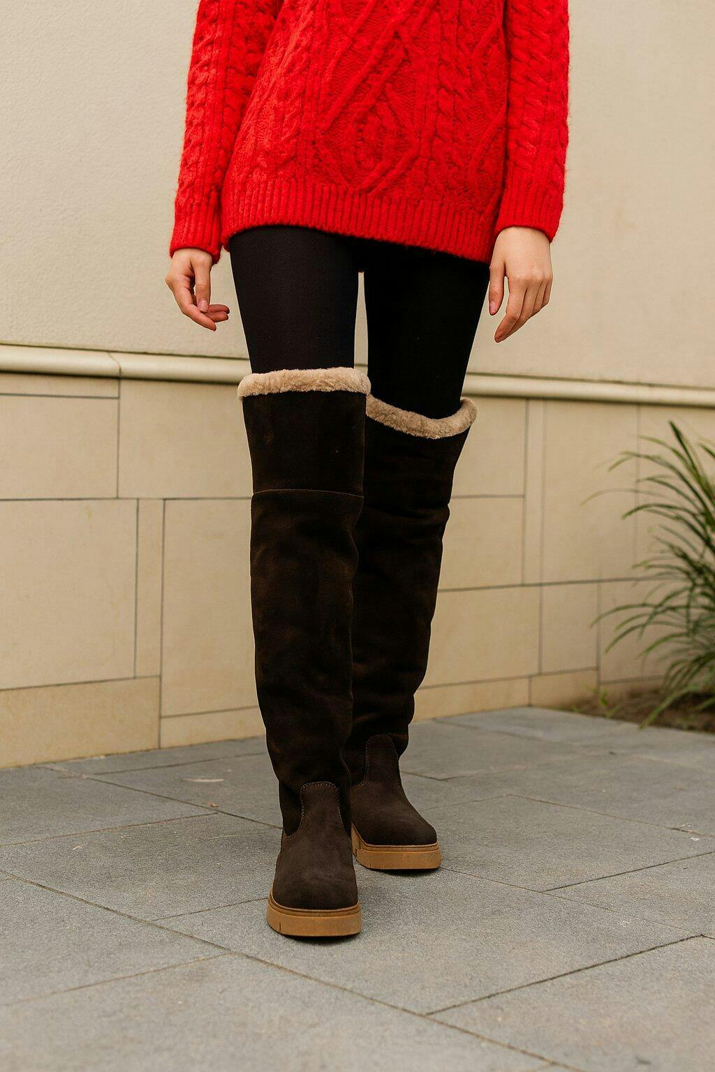 Amazing boots!The thick fur lining make them perfect for the snow and cold. The soles are nonslip and thick. Also, they go easily over my thick calves. They are my winter basics. Can’t survive without them.