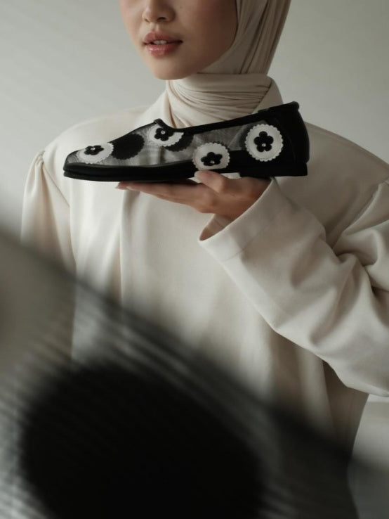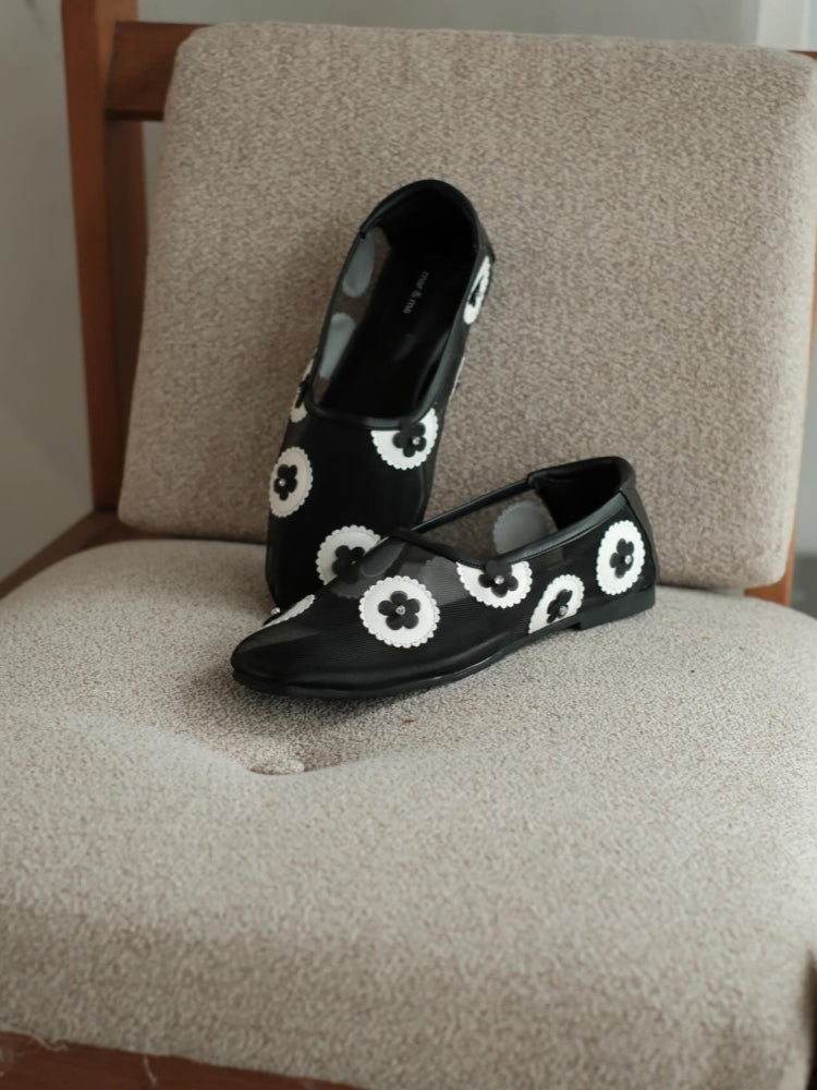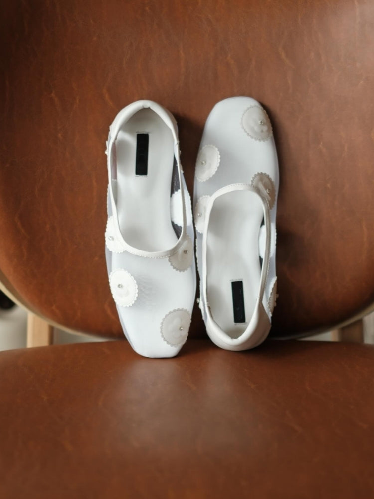 Mesh Flats With Mauve Floral Embellishments