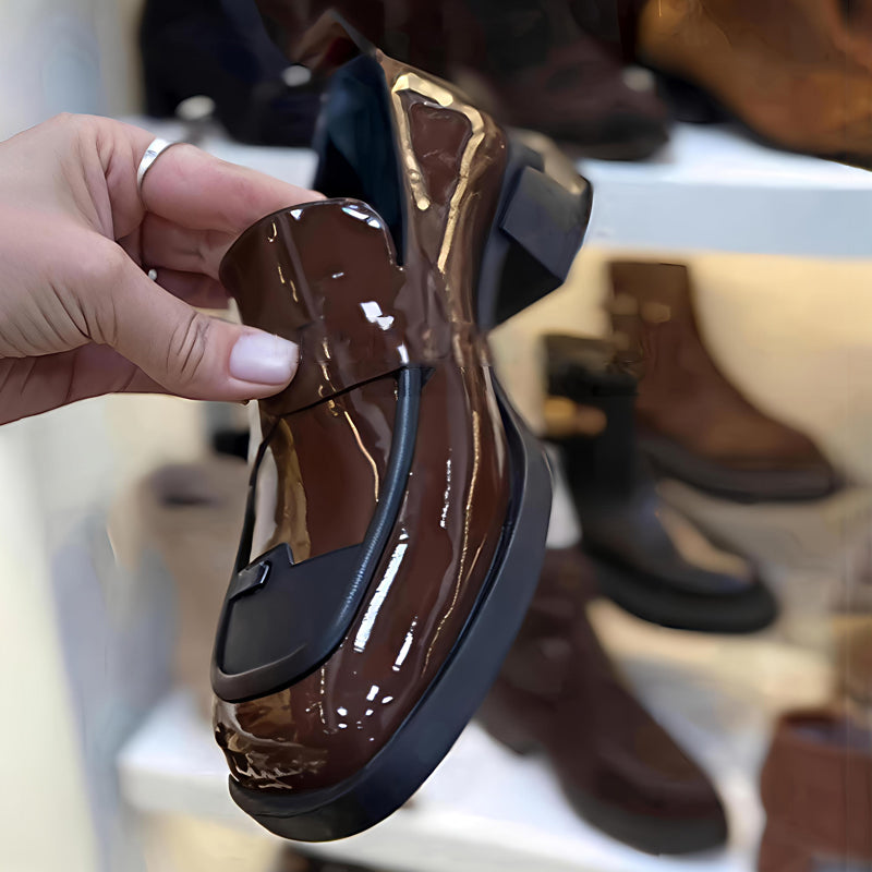 Patchwork Square Heeled Loafers