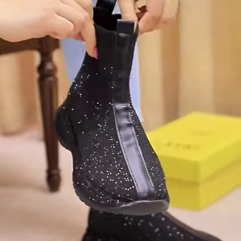 Rhinestone Sparkle Flat Knit Stretch Boots